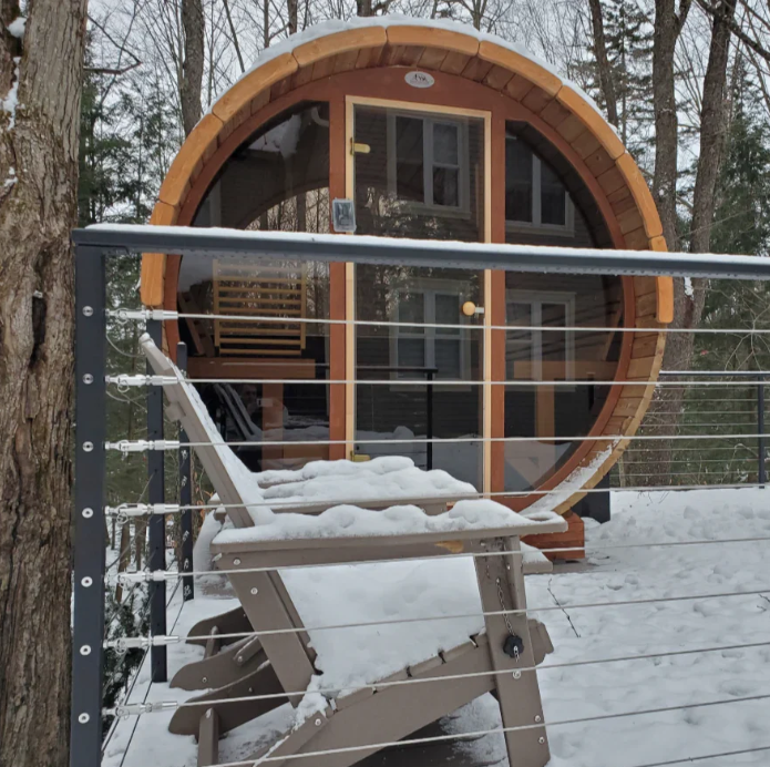 Projet de garde-corps en bois avec câbles d'acier dans les Laurentides, Quebec