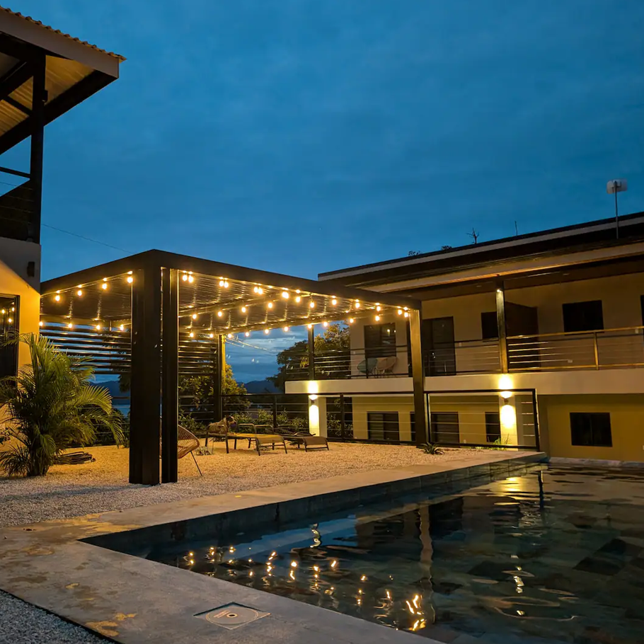 Garde-corps noirs avec câbles minimaliste pour piscine luxueuse au Costa Rica