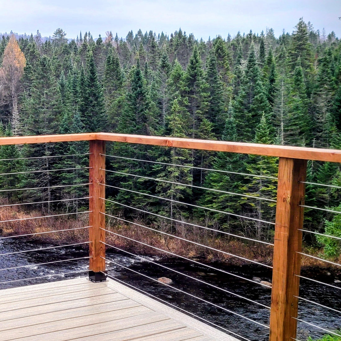 Projet de garde-corps en bois avec câbles d'acier en Gaspésie, Québec