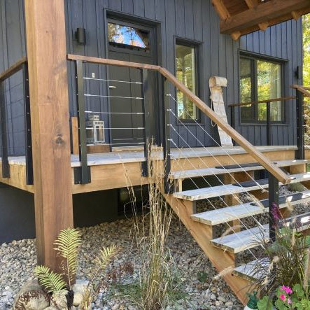 Projet de garde-corps en câble d'acier pour escalier extérieur à Kamloops, Colombie-Britannique