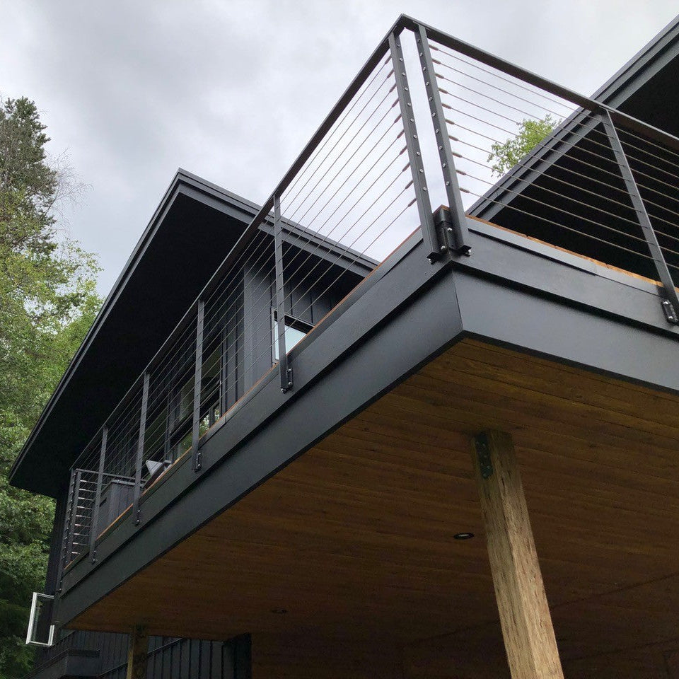 Projet de garde-corps en câble avec poteaux en métal noirs à Sherbrooke, Estrie